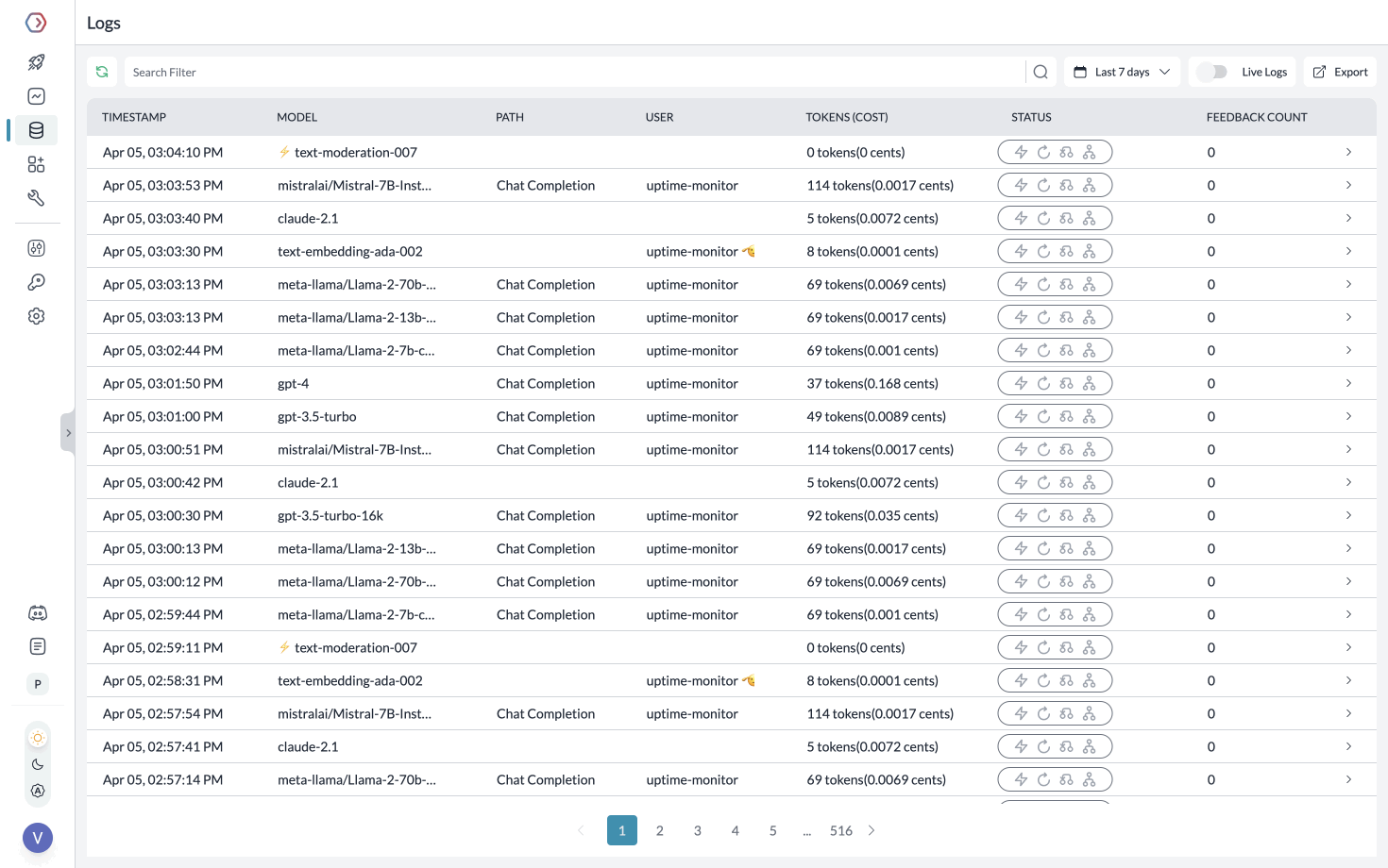 Portkey logs all the requests you’re sending to help you debug errors, and get request-level + aggregate insights on costs, latency, errors, and more. You can enhance the logging by tracing certain requests, passing custom metadata or user feedback.