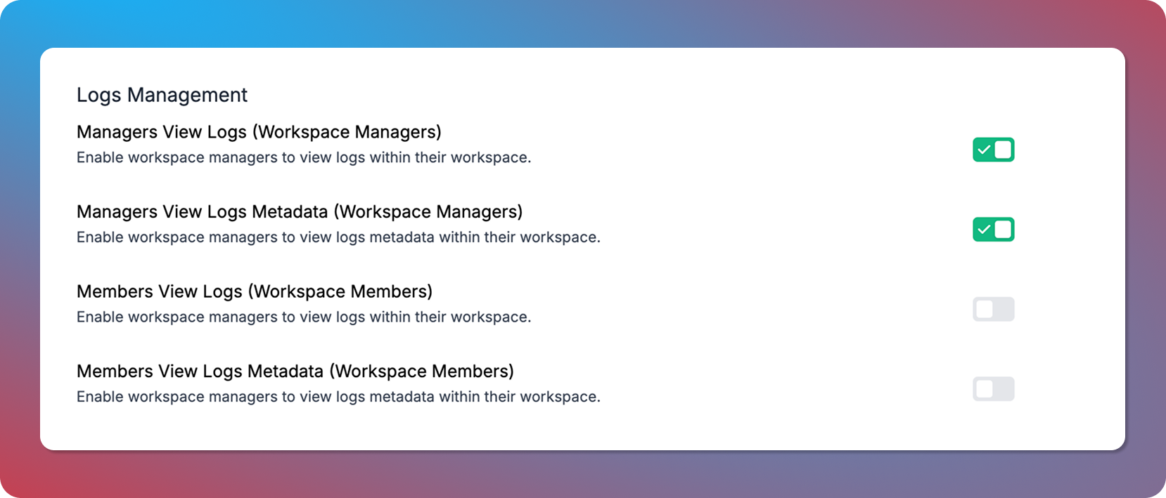 | Members View Logs Metadata | Allow workspace members to view logs metadata within their workspace |
